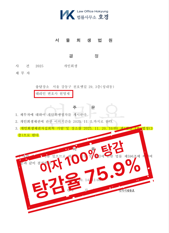 질병·사고로 인한 채무, 원금 75.9% 탕감된 개인회생 개시결정 사례
