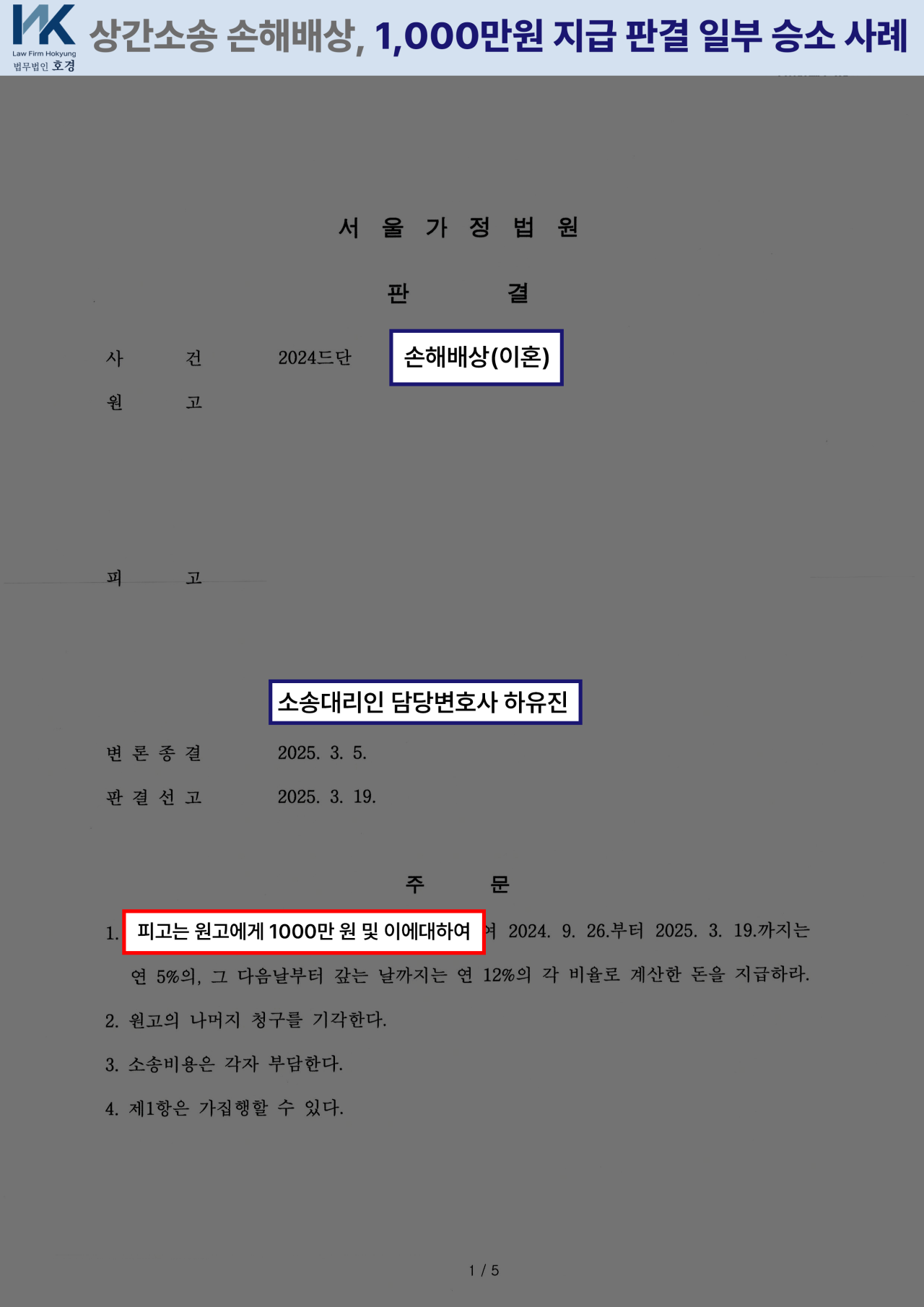 상간행위에 따른 손해배상 청구가 실제로 받아들여질 수 있음을 확인한 사례입니다.