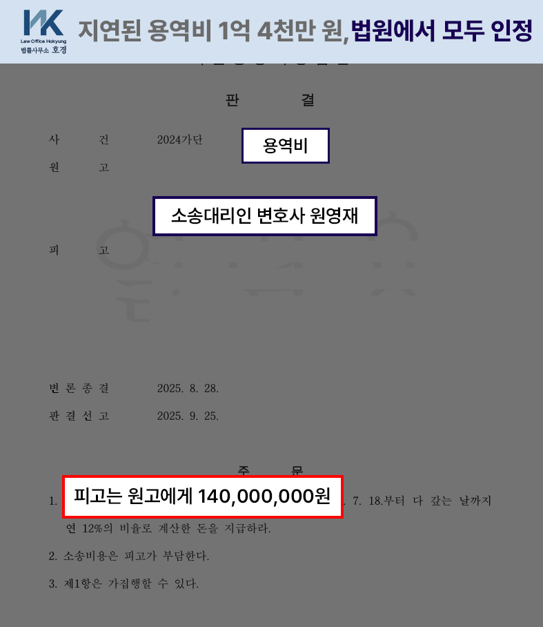 미지급 용역비 분쟁, 1.4억 전액 배상판결