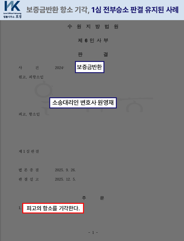 보증금 전액과 이자를 모두 인정받아 법적으로 분쟁을 종결할 수 있었습니다.