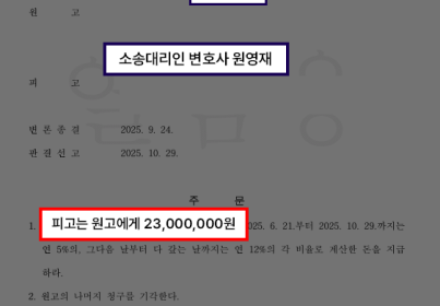 불법행위로 인한 피해 중 2천3백만 원이 인정되며, 원고에게 유리한 일부승소 판결을 확보한 사건입니다.