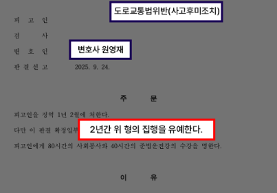 도주치상·사고후미조치, 집행유예 2년으로 선처된 사례