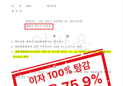 01. 사건 개요 본 사건은 가족 부양과 의료비 부담으로 채무가 누적된 의뢰인이 개인회생을 신청한 사안입니다. 의뢰인은 배우자와 혼인하여 두 자녀를 둔 가장으로, 2022년 큰 자녀가 조현병 진단을 받으면서 장기간 치료와 병원 진료가 필요한 상황에 놓이게 되었습니다. 동시에 고령의 노모가 치매를 앓고 있어, 의뢰인은 가족의 생계와 의료비를 모두 책임져야 하는 상황이었으나, 고령으로 인해 안정적인 고소득 직장을 구하기 어려웠고, 육체적으로 무리가 큰 직종 역시 선택하기 어려운 상태였습니다. 결국 가족들의 생활비와 의료비를 충당하기 위해 금융권 대출을 이용하게 되었고, 그 과정에서 채무가 점차 누적되어 정상적인 상환이 어려운 상황에 이르게 되었습니다. 02. 쟁점 정리 본 사건에서 법원이 중점적으로 검토한 사항은 다음과 같습니다. 채무 발생 원인이 사치나 투기 목적이 아닌, 가족 부양 및 의료비 지출에 기인한 것인지 여부 의뢰인의 연령과 소득 구조에서 현실적인 변제계획 수립이 가능한지 여부 다수의 부양가족이 존재하는 상황에서 개인회생 절차를 통한 채무 조정의 필요성 특히 의뢰인은 가족의 치료비와 생활비 부담이 지속적으로 발생하고 있어, 기존 채무 구조로는 회생이 사실상 불가능한 상태였습니다. 03. 호경의 조력 법률사무소 호경은 본 사건에서 의뢰인의 채무 발생 경위를 감정적으로 서술하기보다, 가족 부양 구조·의료비 지출 내역·소득 현실을 중심으로 법원이 판단할 수 있도록 사건을 구조화하였습니다. 의뢰인의 연령, 부양가족 현황, 의료비 부담이 장기적으로 지속될 수밖에 없는 점을 객관적으로 소명하고, 현실적인 월 변제 가능 범위를 기준으로 지속 가능한 변제계획안을 수립하여 제출하였습니다. ▶ 절차 진행 경과 2025.04.07. 개인회생 신청 2025.07.20. 개인회생 개시결정 04. 법원의 판단 및 결과 법원은 의뢰인의 채무 발생 경위, 가족 부양 상황, 소득 및 연령 등을 종합적으로 고려한 결과, 개인회생 절차를 통해 채무를 조정하는 것이 타당하다고 판단하였습니다. ▶ 사건 결과 개인회생 개시결정 이자 100% 전액 탕감 원금 변제율 약 14.8% 적용 원금 기준 약 85.2% 탕감 본 결정으로 의뢰인은 과도한 채무 부담에서 벗어나, 가족의 치료와 생계를 유지하면서 법원의 보호 아래 회생 절차를 진행할 수 있게 되었습니다.