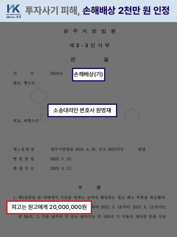 투자사기 피해, 손해배상 2천만원 판결