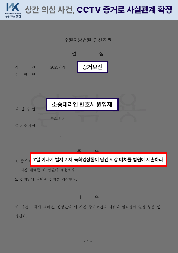 법원이 요구한 CCTV 시간대 영상들을 확보해 동선·출입 사실을 명확히 입증했습니다.