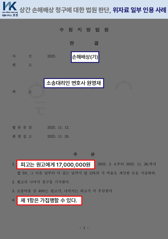 상간손해배상 1,700만 원 인정, 일부승소 사례